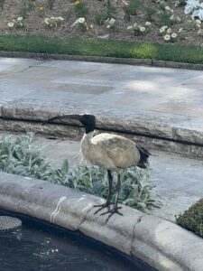 「パイオニア・メモリアル・ガーデン」のオーストラリアクロトキ(Australian White Ibis)。多くの場所で見かけるメジャーな鳥。