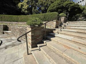 「パイオニア・メモリアル・ガーデン」の階段部分にある標識