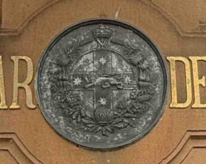 右側の門柱のレリーフ(ニューサウスウェールズ州の紋章)
