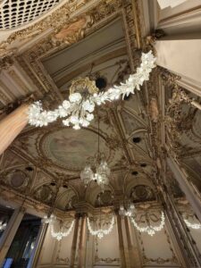 天井の装飾画、豪華なシャンデリアなどが目を惹く